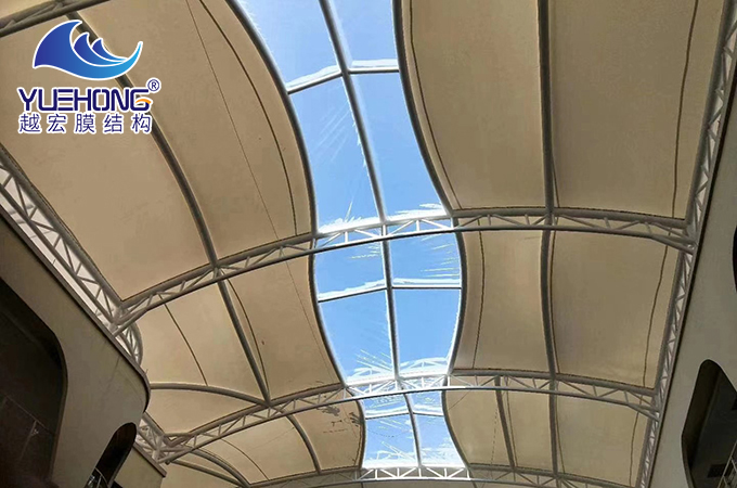 越宏膜结构厂家的风雨球场膜结构是由钢结构和膜材组成,分别有张拉式膜结构、索膜结构、骨架式膜结构、空间结构式等供选择,根据不同场景进行设计出个性化膜结构。