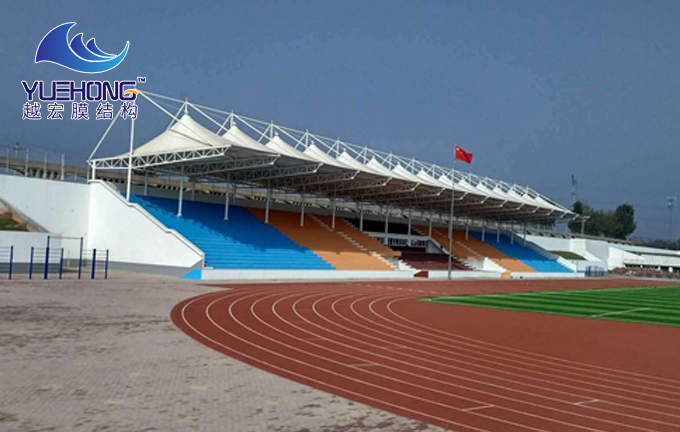 看台膜结构的设计与功能因使用场景和需求的不同而有所差异,多是为观众提供座位,满足观众观看视觉感,最大跨度能做到50米-60米,满足大场地观众席的需求。具有遮阳遮雨挡风功能,透光性能好,透光率满足观众台所需的光线,坚固耐用,造型多样化。